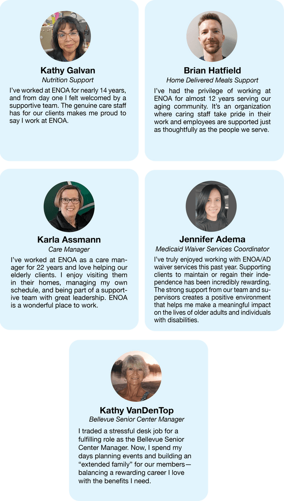 You can make a difference with a rewarding career working with disabled and/or older adults, providing opportunities and support to help them remain independent to their fullest capacity. ENOA supports staff in achieving work-life balance. Apply today!